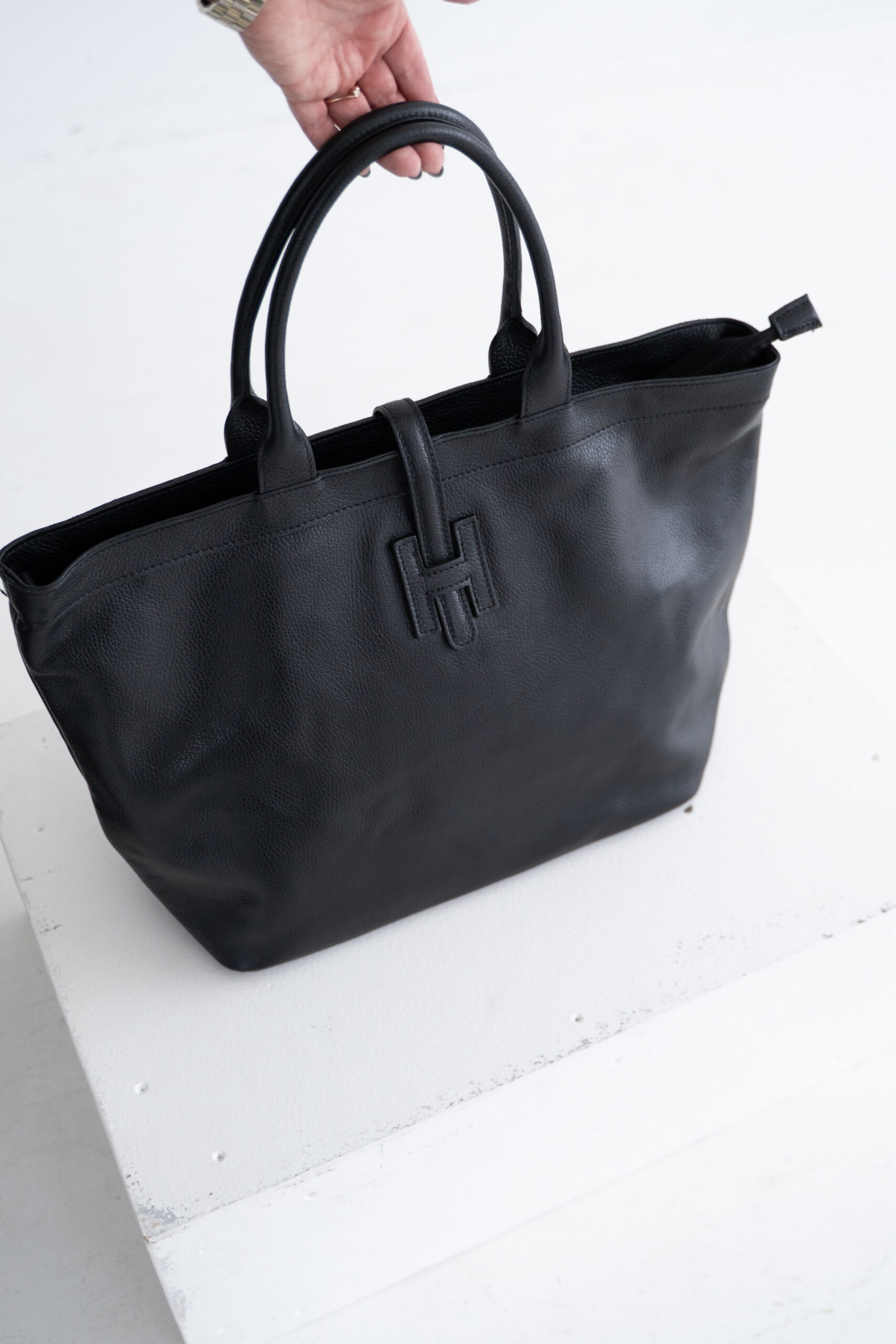 Natural leather tote bag | Black
