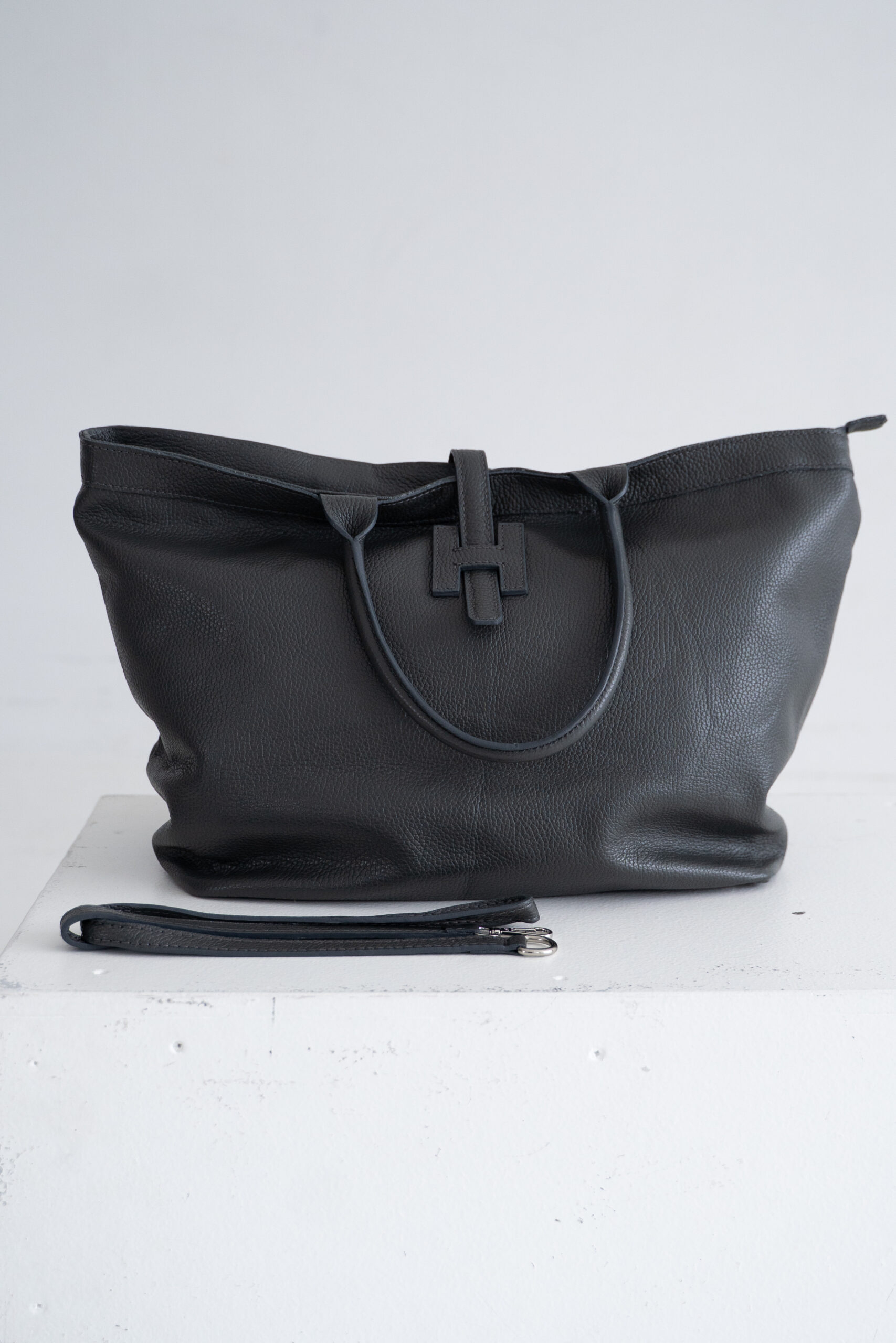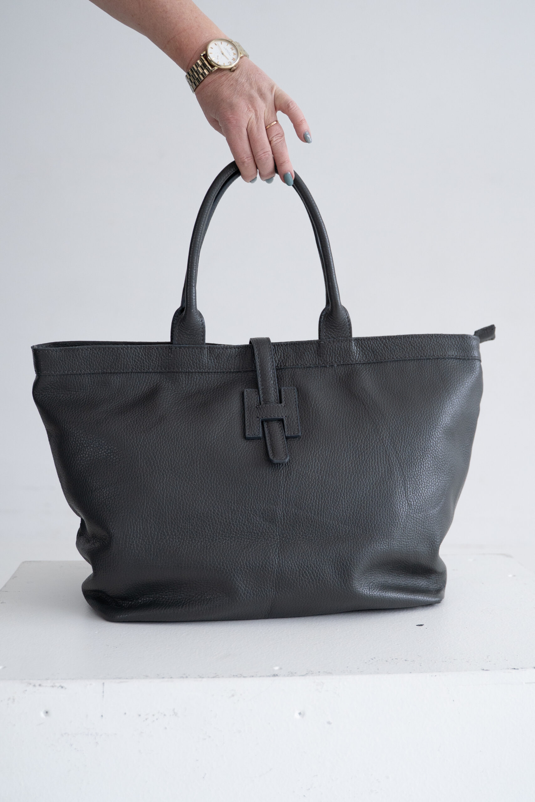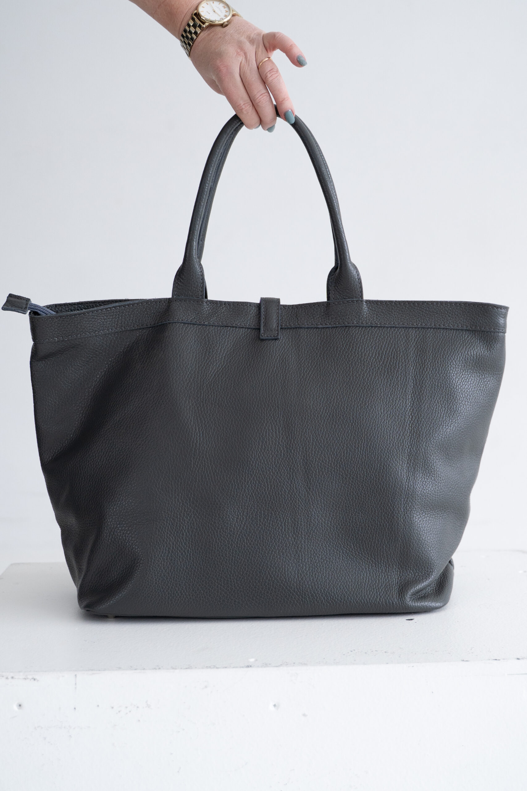 Natural leather tote bag | Gray