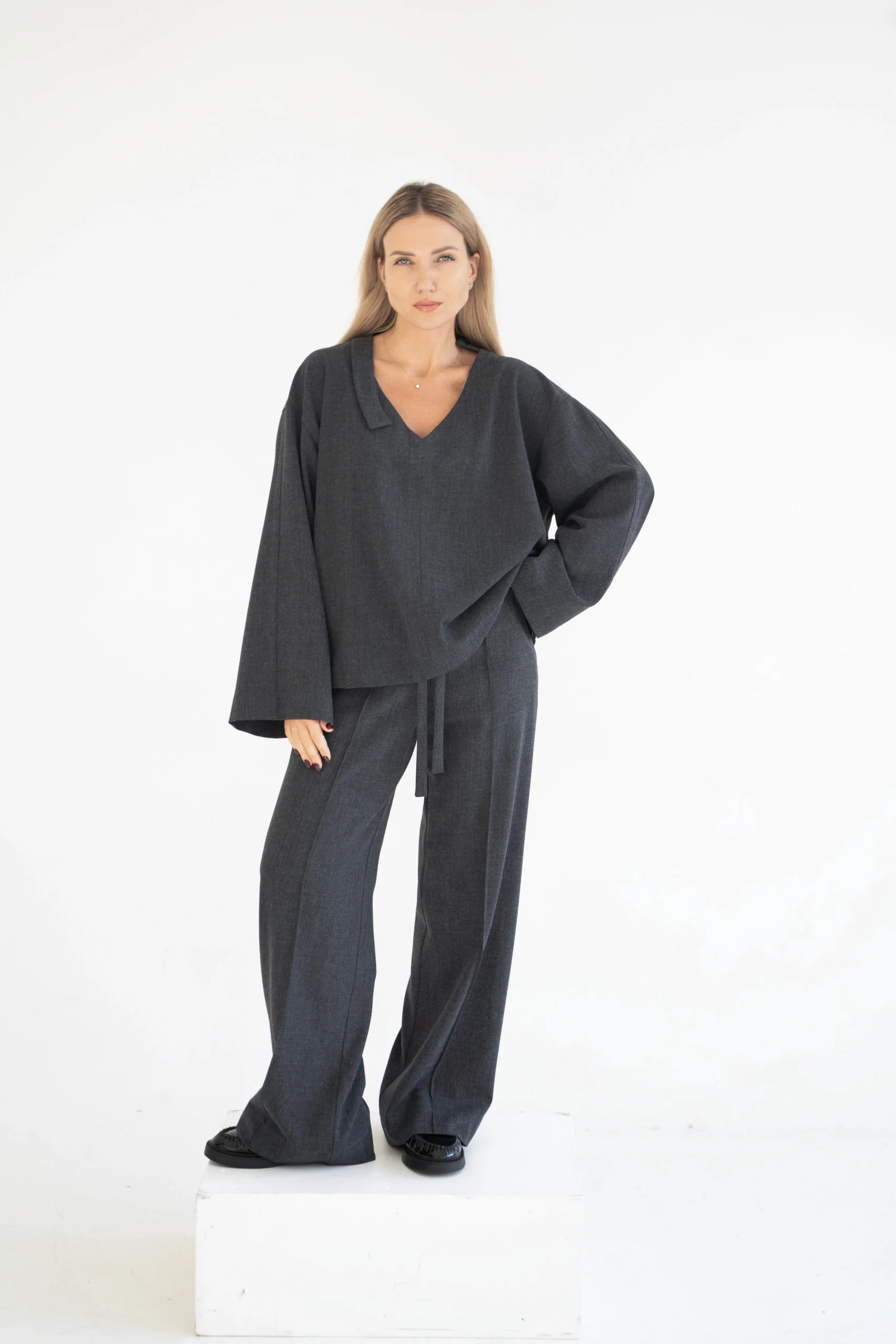 – Kartu pasirinkdama tos pačio audinio kelnes turėsi tobulą kostiumėlį!