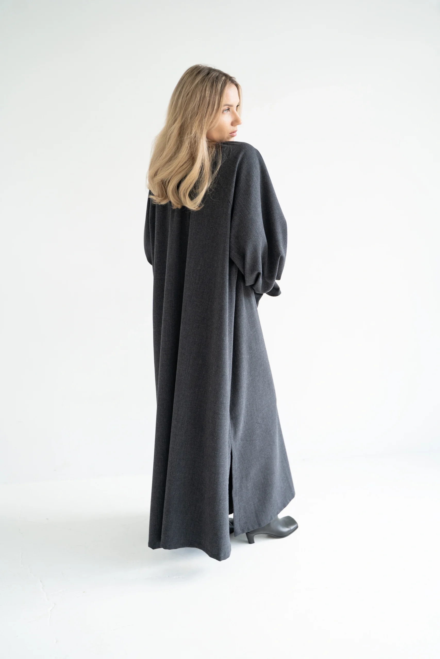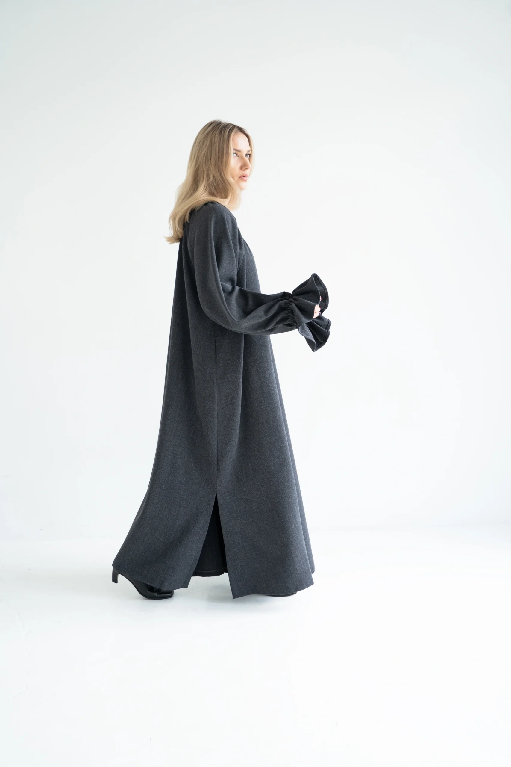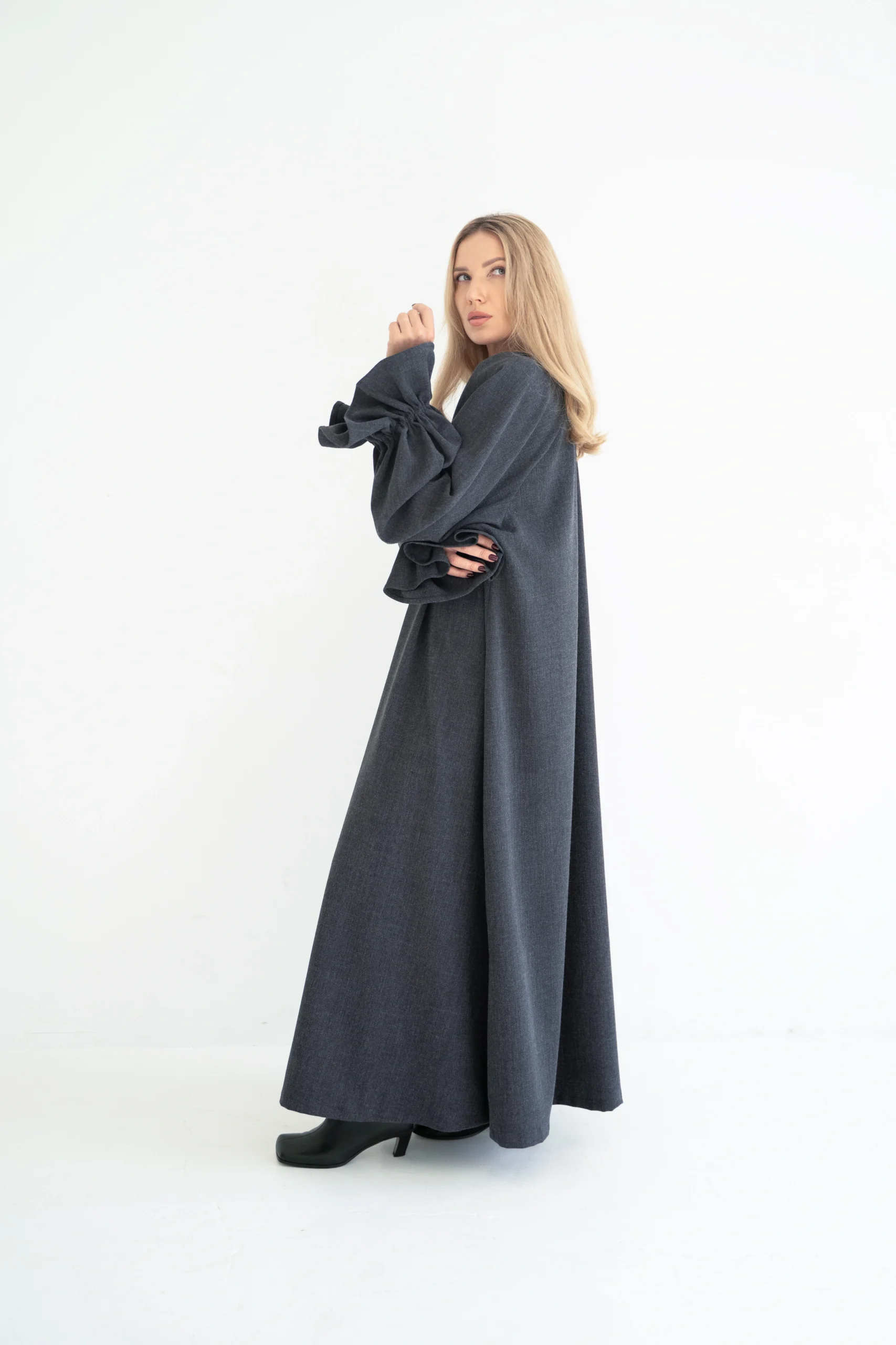 – Suknelės išskirtinumas itin plačios rankovės su gražiais rankogaliais