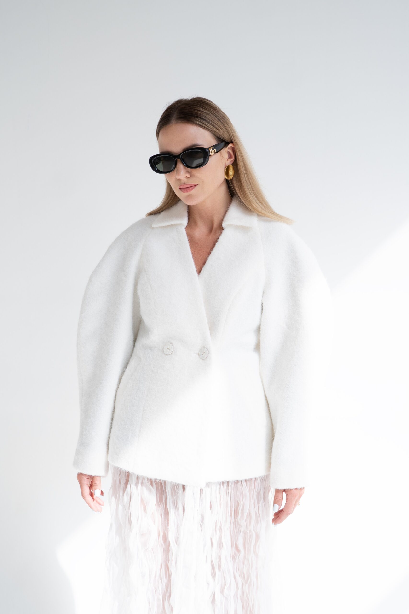 – Švarko išskirtinumas – plačios rankovės