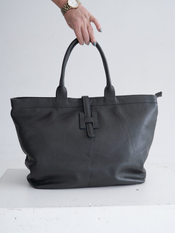 Natural leather tote bag | Gray