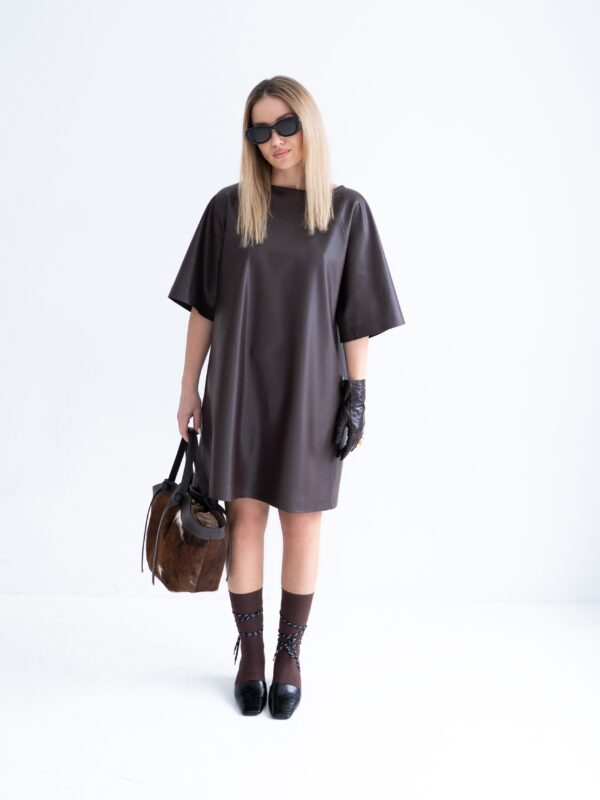 Eco leather dress | Dark brown